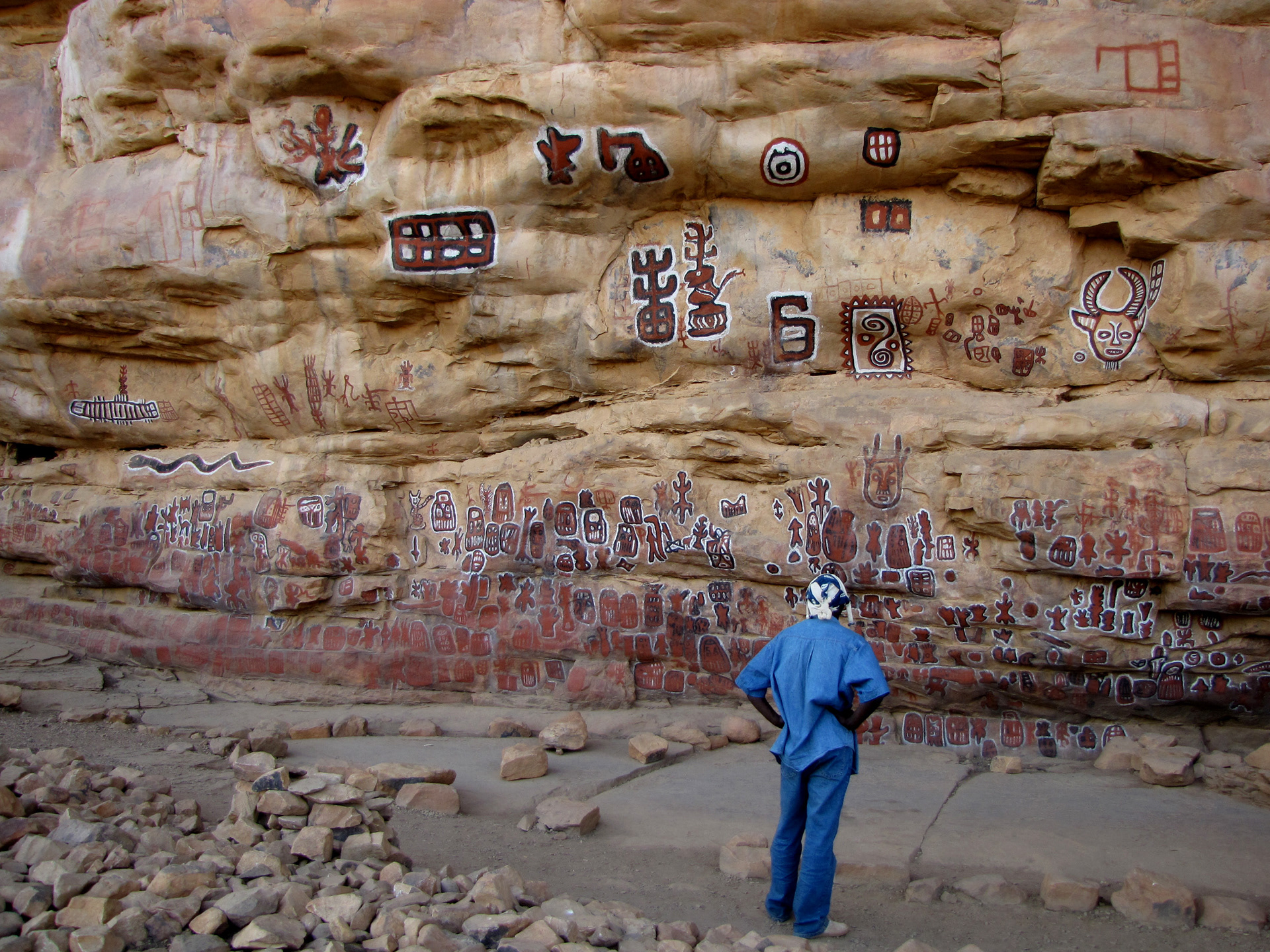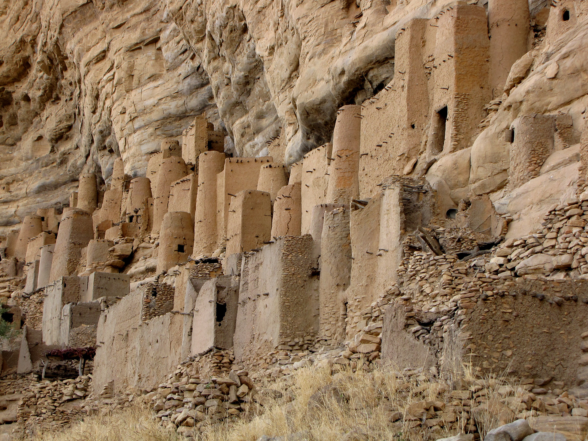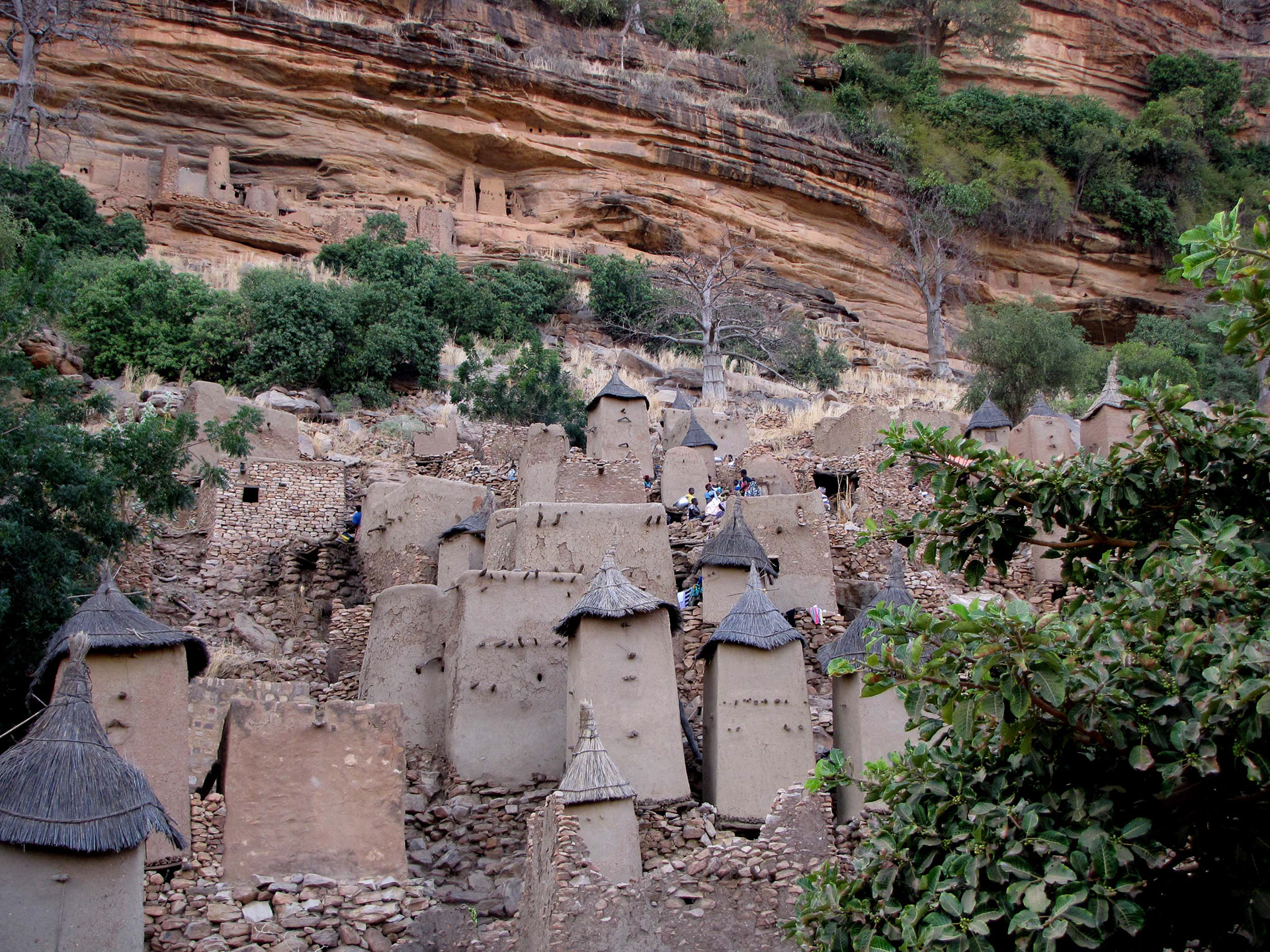 Autrefois les Tellem vivaient dans les parois de la falaise de Bandiagara. Les Dogon les ont remplacés il y a plusieurs siècles.