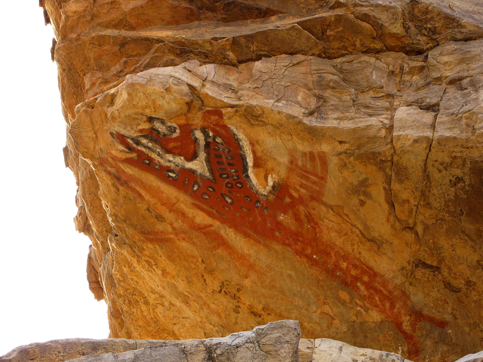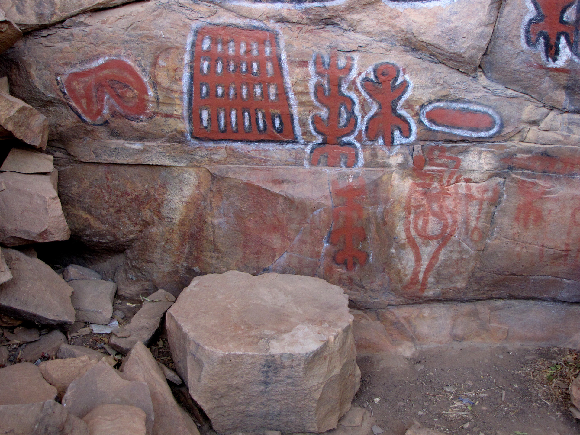 La grotte de circoncision est entièrement décorée de peintures évoquant les mythes dogons, les animaux mythiques notamment le serpent. Trois couleurs
